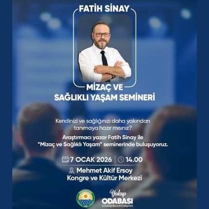 Fatih Sinay ile Mizaç ve Sağlıklı Yaşam seminerinde bir araya gelecek olan dinleyiciler, kendi mizaç yapılarını öğrenerek daha bilinçli bir yaşam sürdürme fırsatı bulacaklar.