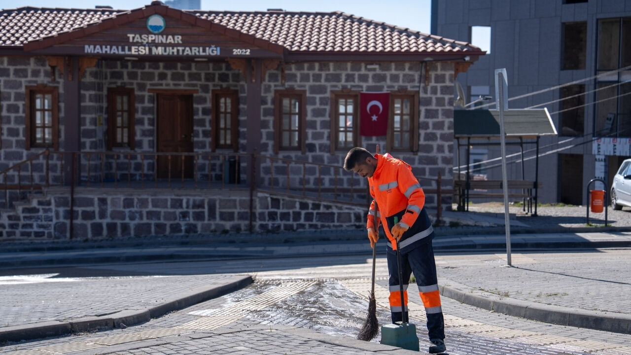 Gölbaşı Belediyesi ekipleri baharın gelmesiyle birlikte Taşpınar Mahallesi genelinde tazyikli su ve modern makinelerle kapsamlı bir temizlik çalışması yürüttü.