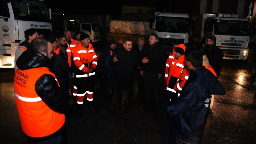 Gölbaşı Belediye Başkanı Yakup Odabaşı, kar yağışının ardından gece gündüz demeden kar küreme ve tuzlama çalışmalarını gerçekleştiren Temizlik İşleri Müdürlüğü ve Fen İşleri Müdürlüğü ekiplerini sabahın erken saatlerinde ziyaret etti.