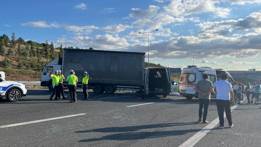 06 C 1162 plakalı servis minibüsünün sürücüsü kontrolü kaybederek aynı istikamette ilerleyen 06 KA 7705 plakalı kamyona arkadan çarptı. Çarpmanın etkisiyle minibüs büyük hasar aldı.