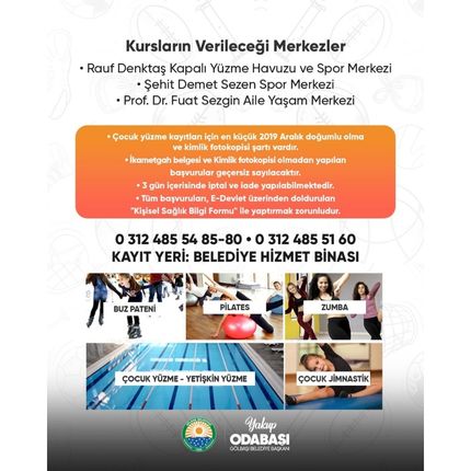 Yüzme kursları için 2019 Aralık ayı öncesinde doğmuş olma ve kimlik fotokopisi şartı aranırken, kayıtların kontenjanla sınırlı olduğu belirtildi.