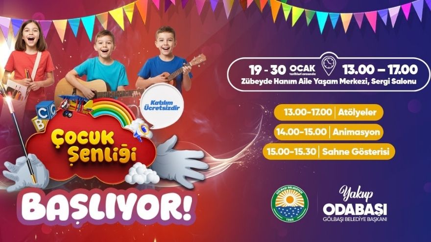 Yarıyıl tatilinin getirdiği heyecan spor aktiviteleriyle sınırlı kalmayarak bir şenlik havasına bürünecek. Gölbaşı Belediyesi tarafından organize edilen Çocuk Şenliği, 19-30 Ocak 2026 tarihleri arasında Zübeyde Hanım Aile Yaşam Merkezi Sergi Salonu’nda gerçekleştirilecek.