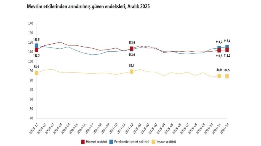 TÜİK, 2025 Aralık ayına ilişkin hizmet, perakende ticaret ve inşaat güven endeks verilerini açıkladı.