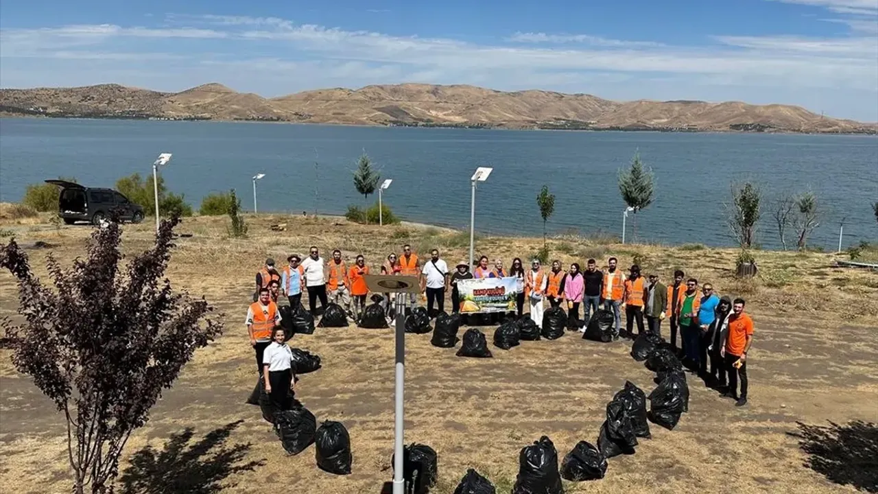 Elazığ Kamp Kulübüne üye gençler, farkındalık oluşturmak amacıyla Hazar Gölü kıyısında çevre temizliği yaptı.