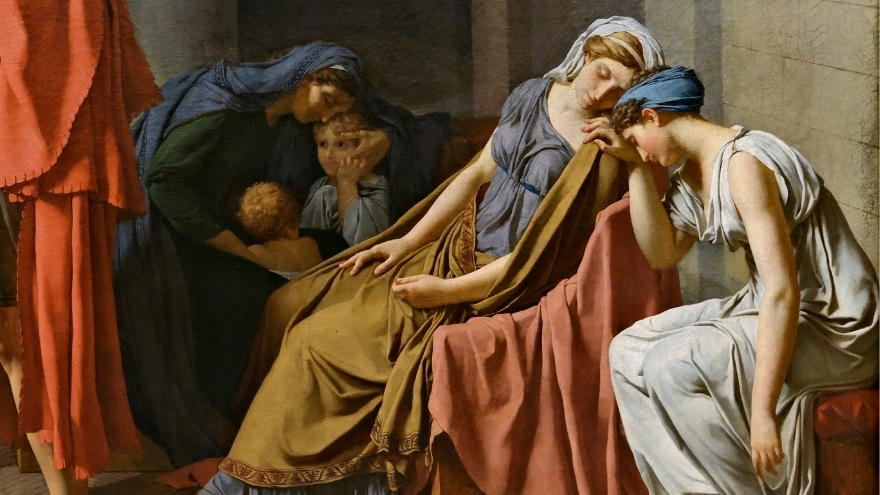 Jacques-Louis David (1748–1825), Fransız neoklasik resmin öncülerindendir. Tarihi ve mitolojik konuları büyük bir titizlikle işleyen David, disiplinli çizgileri ve dramatik sahne anlatımıyla tanınır.
