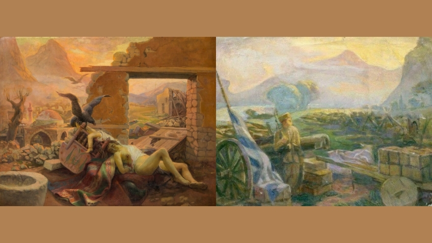 Karagün tablosu, ölen kadın ve bebeği üzerinden savaşın halk üzerindeki dramını anlatır. Yıkılmış köyler, minaresi ayakta kalan camiler ve gökyüzünden süzülen kartallar, düşman güçlerini ve savaşın acısını simgeler.