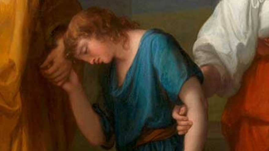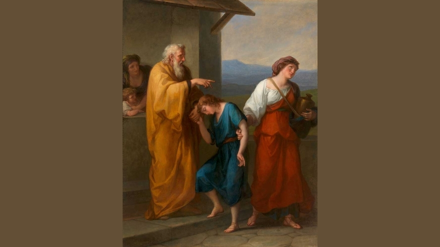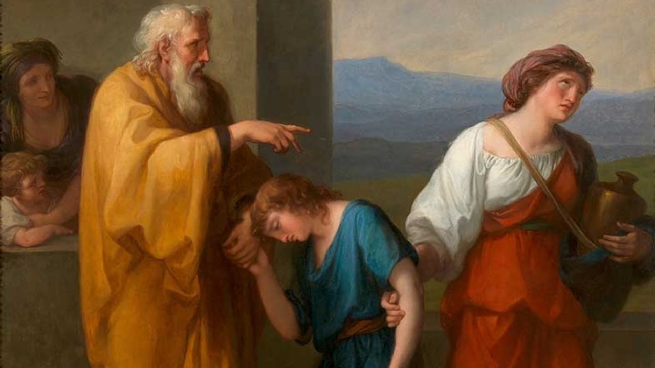 Neoklasik ressam Angelica Kauffman’ın 1792 tarihli eseri İbrahim Hacer ve İsmail’i Çöle Gönderirken, Kur’an ve Tevrat’ta geçen dramatik bir sahneyi tuvalde hayata geçiriyor.