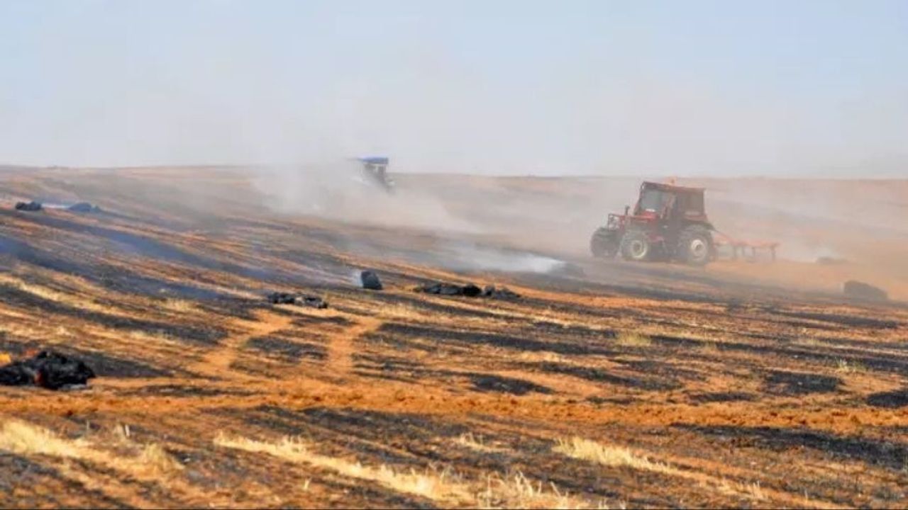 Bazı çiftçiler ise pulluk takılı traktörlerle tarlanın çevresini sürerek alevlerin yayılmasını engellemeye çalıştı.