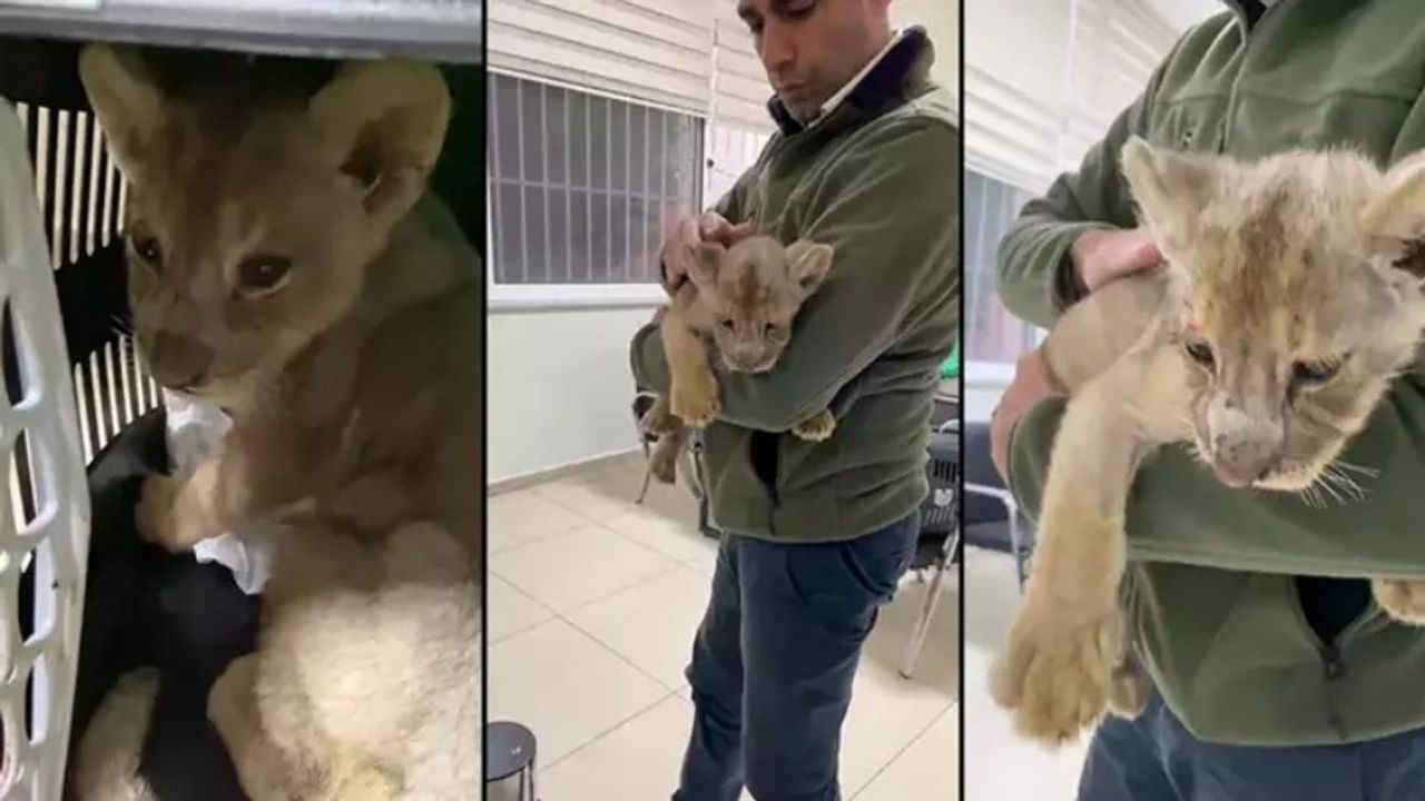 Yaklaşık 35 günlük olduğu belirtilen erkek aslan, veteriner kliniğinde bulunan iki kişiyle birlikte tespit edildi. Yavru aslan koruma altına alınırken, olayla ilgili idari para cezası uygulandığı açıklandı.