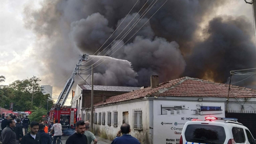İzmir’in Bornova ilçesinde sabah saatlerinde büyük bir yangın çıktı. İnşaat malzemelerinin depolandığı alanda başlayan yangın, kısa sürede tüm depoyu sararken, bölgeden yükselen siyah duman gökyüzünü kapladı.
