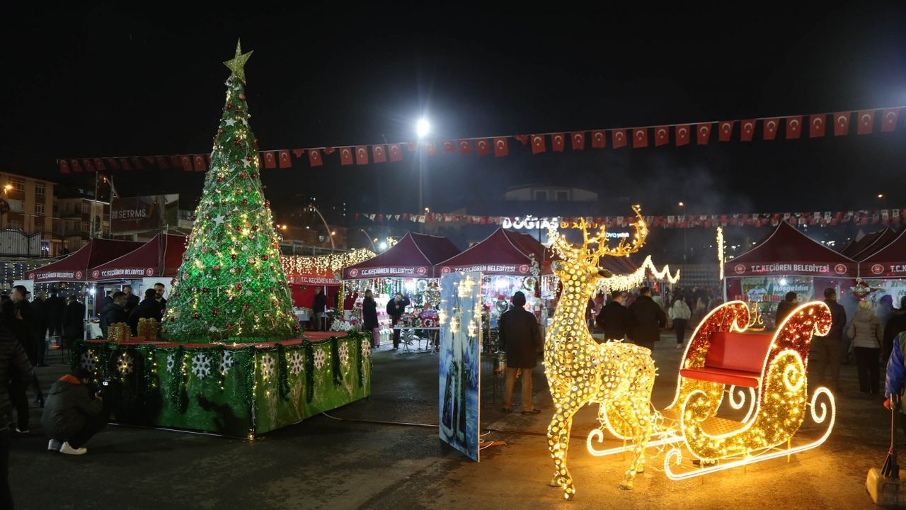 Pazar alanı, yılbaşı ruhunu yansıtan özel ışıklandırmalar, süslenmiş çam ağaçları ve geyik figürlü dekorlarla donatıldı.