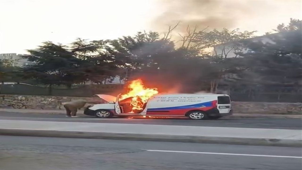 Hafif ticari aracın sürücüsü aracını yol kenarına çekerek araçtan inip alevlere yangın söndürme tüpüyle müdahale etti ancak başarılı olamadı. Yangının çıktığı araç alevlere teslim oldu.