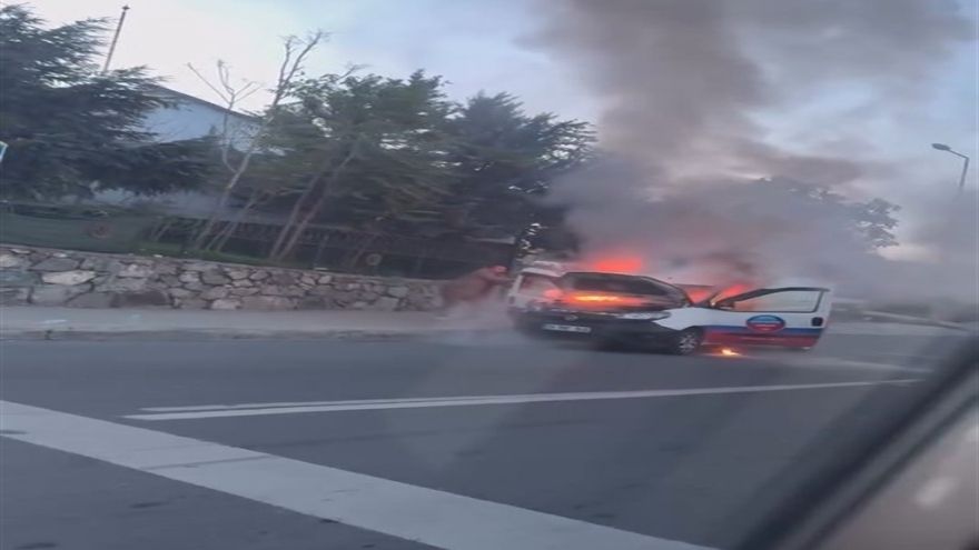 Olay yerine gelerek müdahale eden itfaiye ekipleri, araçta çıkan yangını kontrol altına alarak söndürdü.