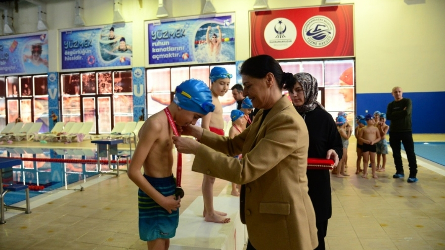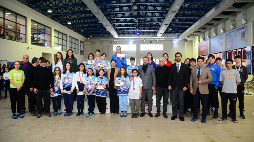 Kahramankazan’da düzenlenen Okul Sporları Yüzme Müsabakaları, yoğun katılım ve büyük heyecana sahne olurken, dereceye giren öğrenciler ödüllerini protokol üyelerinden aldı.