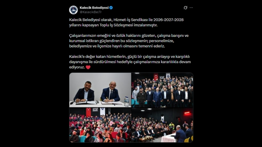 “Kalecik Belediyesi olarak, Hizmet-İş Sendikası ile 2026–2027–2028 yıllarını kapsayan Toplu İş Sözleşmesi imzalanmıştır.”