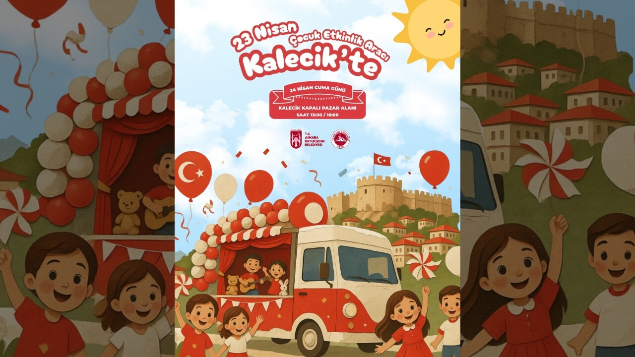 Kalecik Belediyesi 23 Nisan Ulusal Egemenlik ve Çocuk Bayramı kapsamında ilçede çocuklara yönelik özel bir etkinliğe ev sahipliği yapmaya hazırlanıyor. Ankara Büyükşehir Belediyesi’ne ait Çocuk Etkinlik Aracı eğlenceli ve renkli programıyla 24 Nisan Cuma günü Kalecik’te olacak. Kapalı Pazar Alanı’nda gerçekleştirilecek etkinlik çocuklara bayram coşkusunu doyasıya yaşatacak.