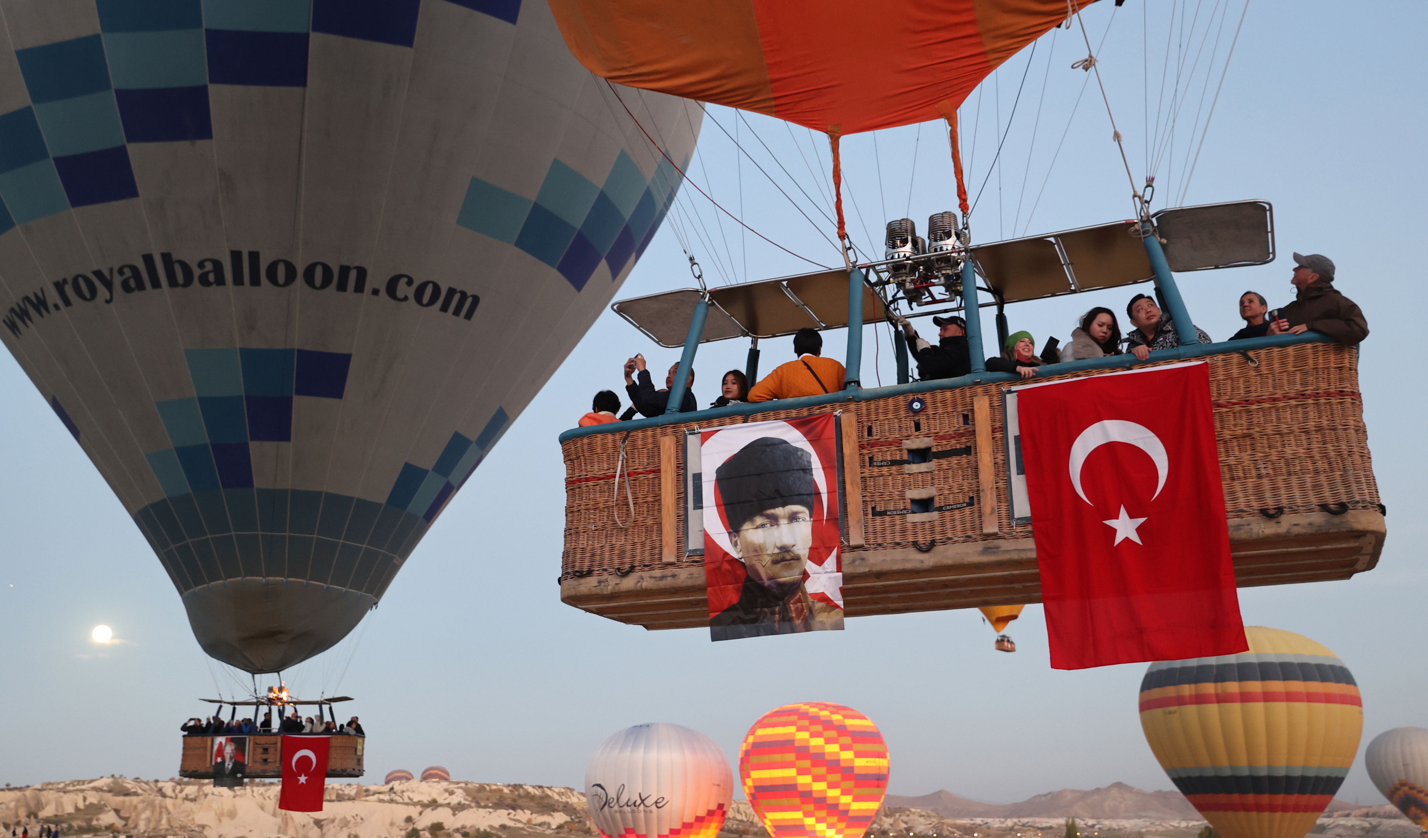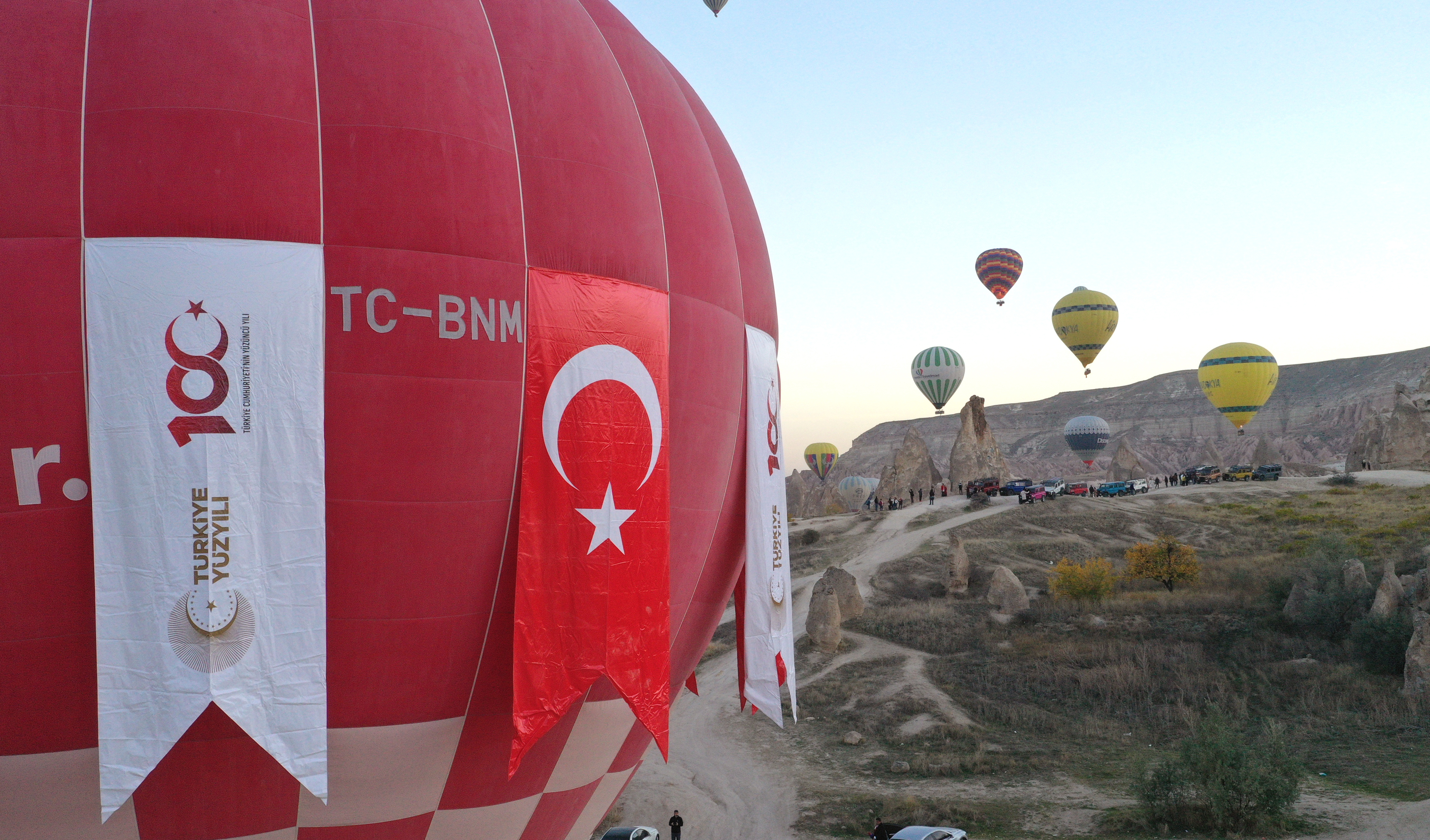 Cumhuriyet'in 100. yılında Kapadokya semaları Türk bayrakları ve Atatürk posterleriyle renklendi. 29 Ekim Cumhuriyet Bayramı etkinlikleri kapsamında, Türk bayrağı ve Atatürk posteri taşıyan onlarca sıcak hava balonu Nevşehir'in Göreme beldesindeki Kapadokya'da gökyüzüne yükseldi.