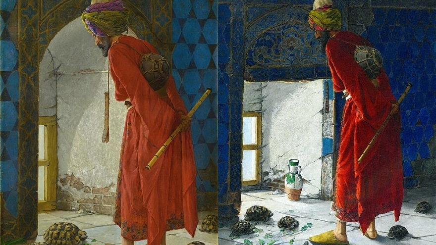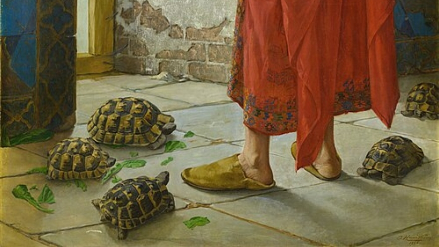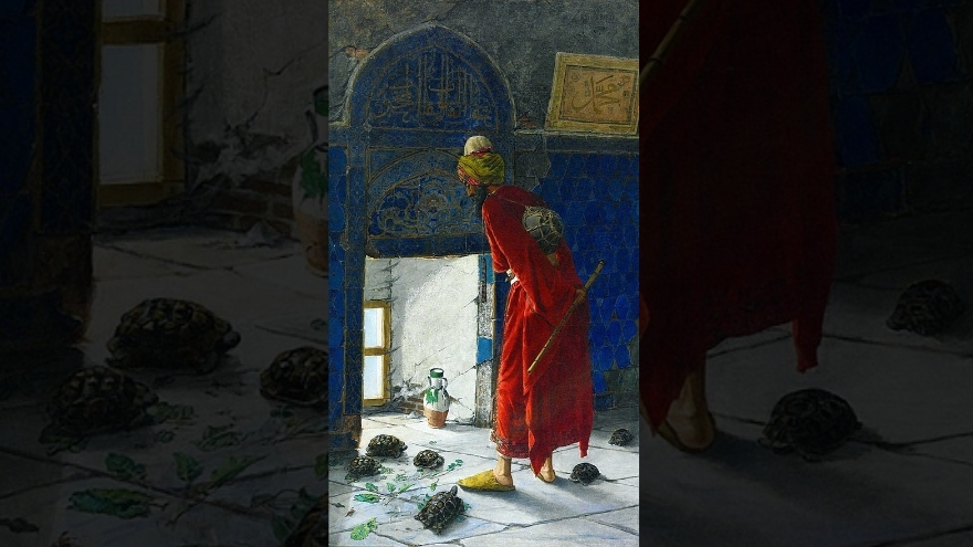 Osman Hamdi Bey’in 1906 ve 1907 yıllarında iki versiyon halinde resmettiği Kaplumbağa Terbiyecisi, yalnızca bir sahneyi değil, bir ruh halini anlatıyor.