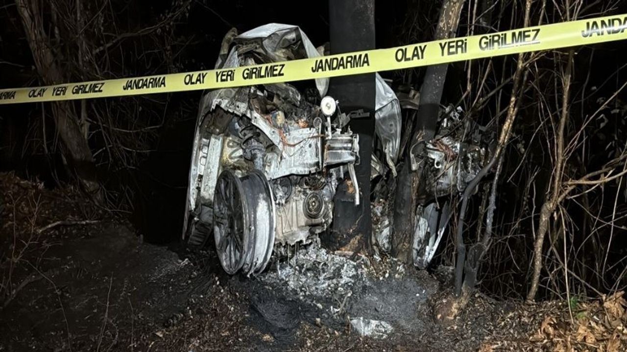 Meydana gelen kazada çarpmanın ardından hafif ticari araç alev alırken sürücü F.Y. hayatını kaybetti.