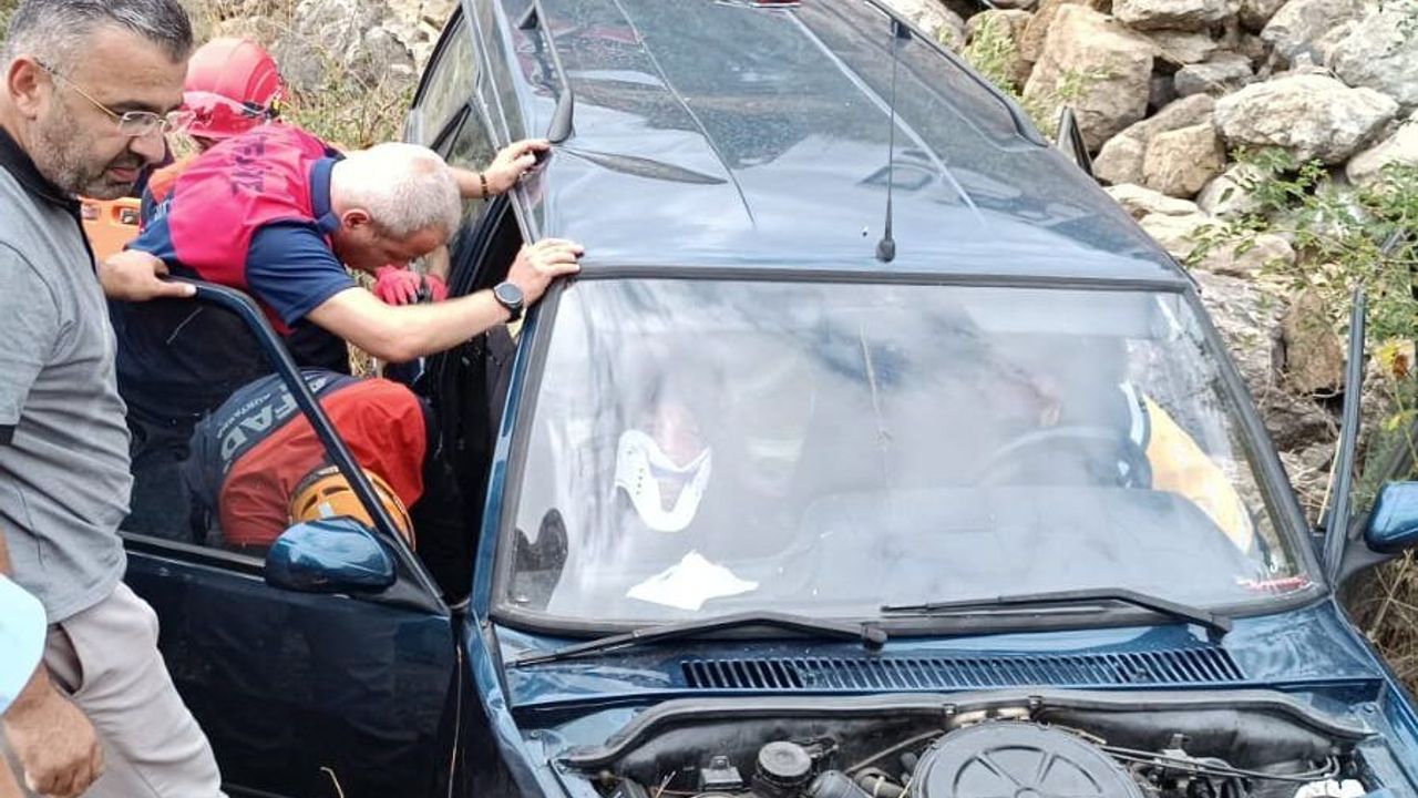 Taşlık alana düşen otomobilin sürücüsü A.G. ve yanındaki Ş.G. yaralandı.