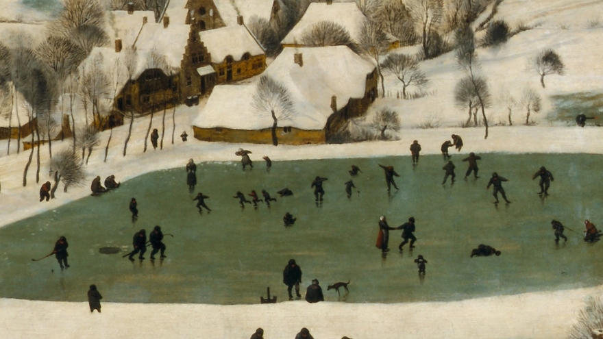 Bu ön planın arkasında ise bambaşka bir dünya var. Buz üzerinde kayan köylüler, sopa ve diskle oynayan gençler, kulübelerin arasında günlük işlerine devam eden insanlar… Bruegel, kışın zorluğunu gösterirken yaşamın akışını ve direncini de ustalıkla resme dahil ediyor.