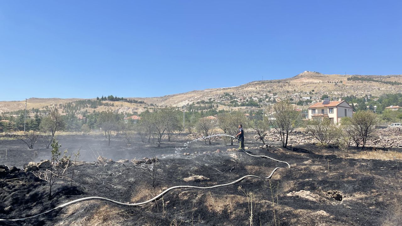 Kayseri'nin Kocasinan ilçesine bağlı Erkilet Mahallesi'nde üzüm bağlarının da bulunduğu arazinin otluk kısmında henüz bilinmeyen bir nedenle yangın çıktı.