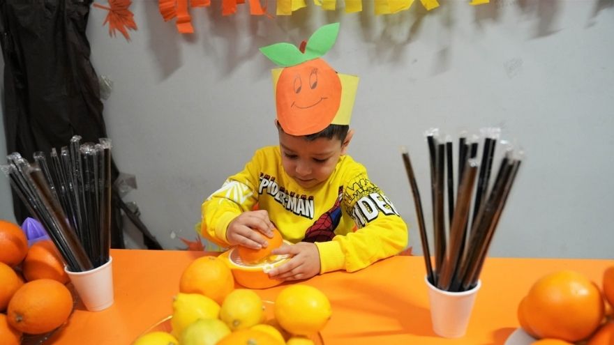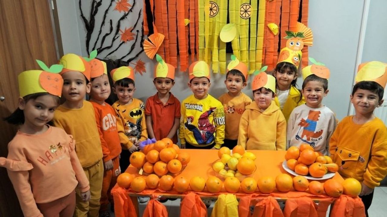 Etkinlik kapsamında çocuklar, öğretmenleri eşliğinde kendi portakallarını sıkarak taze meyve suyu hazırladı.