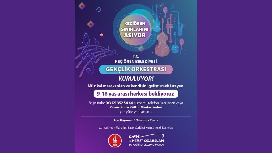 Keçiören Belediyesi, sanata ilgi duyan gençlere yeni bir fırsat sunuyor. 9-18 yaş arasındaki müzik meraklıları, Gençlik Orkestrası’nda hem kendini geliştirme hem de birlikte sahne alma imkanı bulacak.