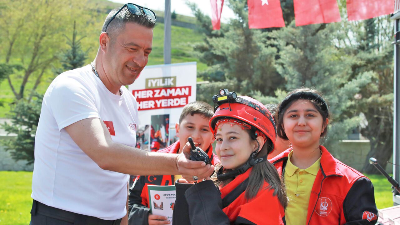 Çocuklar, arama kurtarma ekiplerinin profesyonel ekipmanlarını yakından inceleme ve uzmanlara soru sorma fırsatı da buldu.