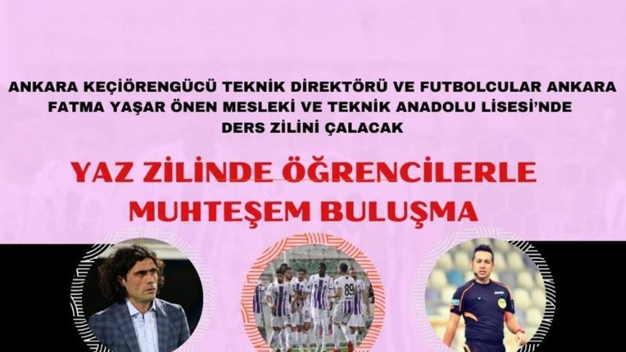 2023-2024 Eğitim- Öğretim yılının ilk ders zili için Ankara Keçiörengücü Futbolcuları ve Teknik Direktörü Serhat Gülpınar ile birlikte Halı Saha Futbol Federasyonu Başkanı Bahadır Bulut, Okul müdürü Seyami Güzel,öğretmenler ve öğrenciler ile bir araya gelecek forma dağıtıp yeni eğitim ögretim yılında çocuklara başarılar dileyip ders zilini birlikte çalacaklar.