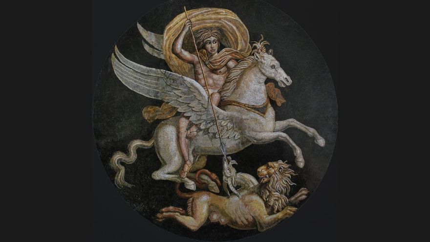 Mitolojiye göre, cesur kahraman Bellerophon, kanatlı at Pegasus’a binerek Kimera’yı yok etmekle görevlendirilmiş.