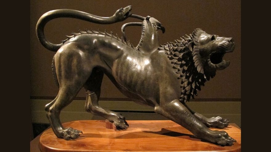 Yunan mitolojisinde anlatılan bu ilginç yaratık, aslan başlı, keçi gövdeli ve yılan kuyruklu olarak tarif ediliyor. Üstelik ağzından da alevler saçıyor!