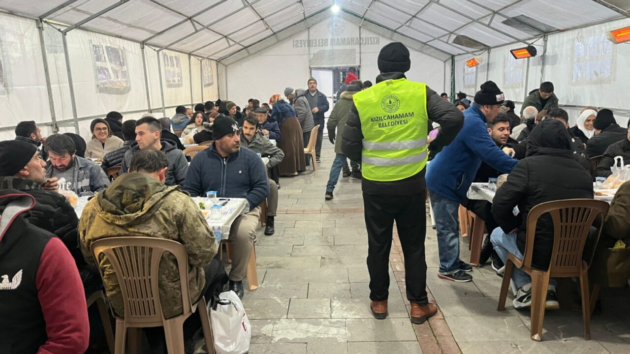 Kızılcahamam’ın simge noktalarından Cumhuriyet Meydanı kurulan dev iftar çadırı ile ilçenin sosyal ve kültürel buluşma merkezi haline geldi. Dayanışma ve paylaşma geleneğinin yaşatıldığı bu özel alanda komşuluk bağları güçlenirken, vatandaşlar Ramazan’ın manevi huzurunu birlik içinde deneyimliyor.