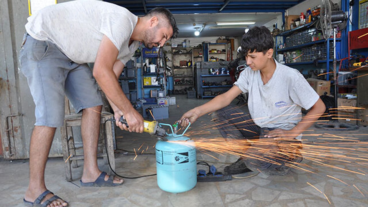 Silifke Zeyneli Hacı Küçük Sanayi Sitesi'nde iş yeri olan oto elektrik ustası Ahmet Alşan, dükkanında hurdaya çıkardığı klima gazı tüpünü, havasını aldıktan sonra spiral makinesi yardımıyla kesip şekillendirerek kumbaraya dönüştürdü.