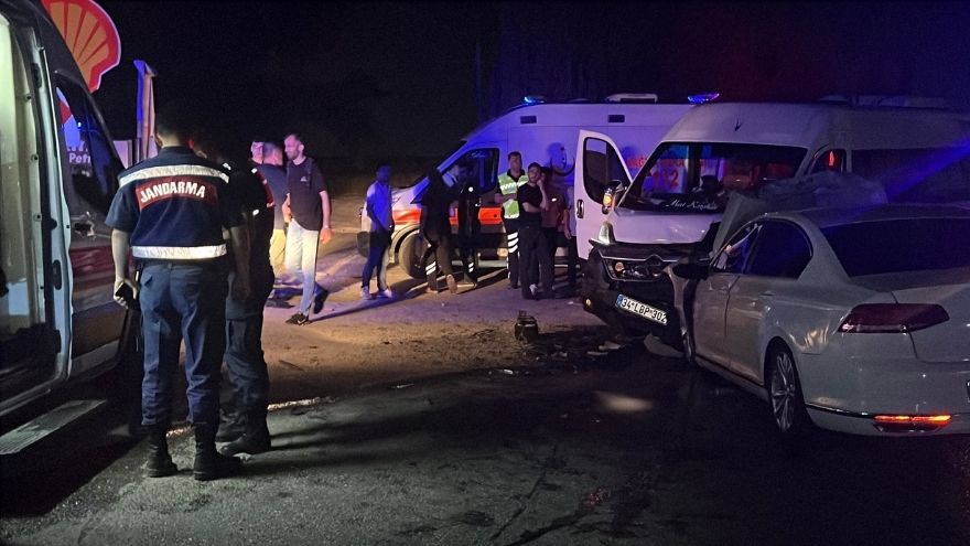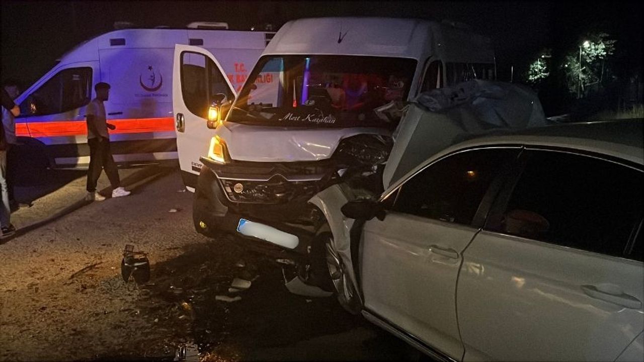 Minibüs ile otomobilin çarpışması sonucu meydana gelen kazada otomobil sürücüsü Ş.B. ile yanındaki yolcu ve minibüs sürücüsü Ö. K. ile 7 yolcu olmak üzere toplam 10 kişi yaralandı.