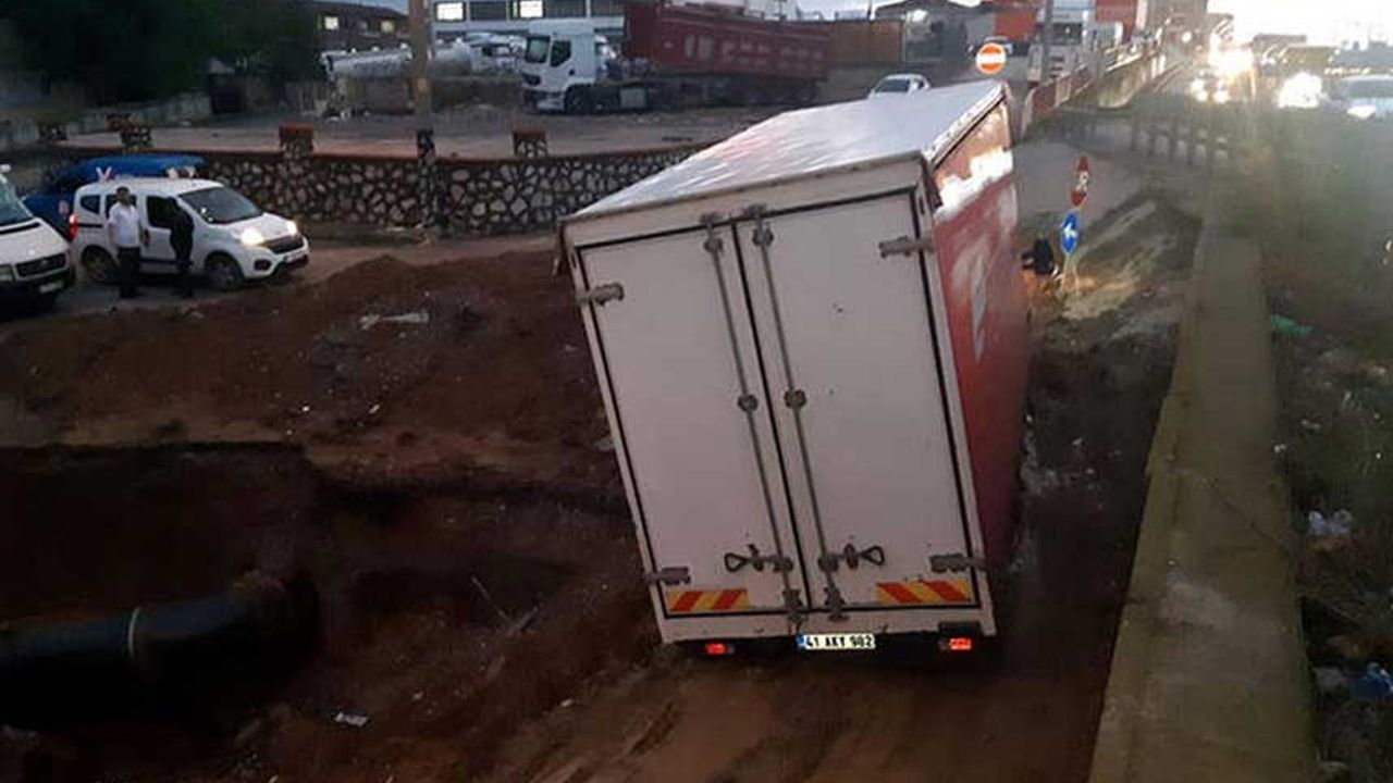 Sağanak yağış sonrası fabrikanın giriş bölümünde yol çöktü. Bu sırada yoldan geçen Ramazan K. idaresindeki 41 AKY 982 plakalı kamyonet, oluşan çukura düştü.