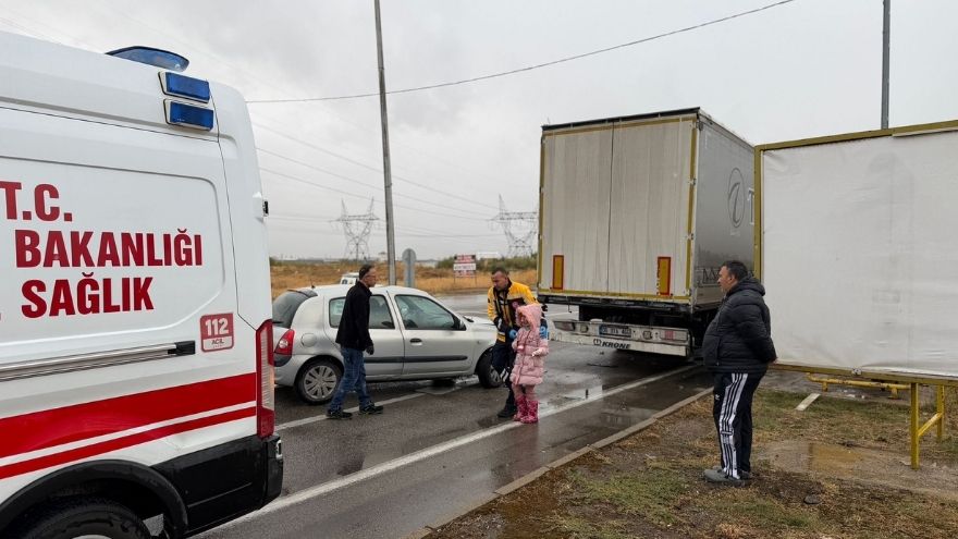 Meydana gelen kazada tırın dorsesine çarpan otomobilin sürücüsü D.A ile araçtaki N.A. (32) ve F.A.A. (8) yaralandı.