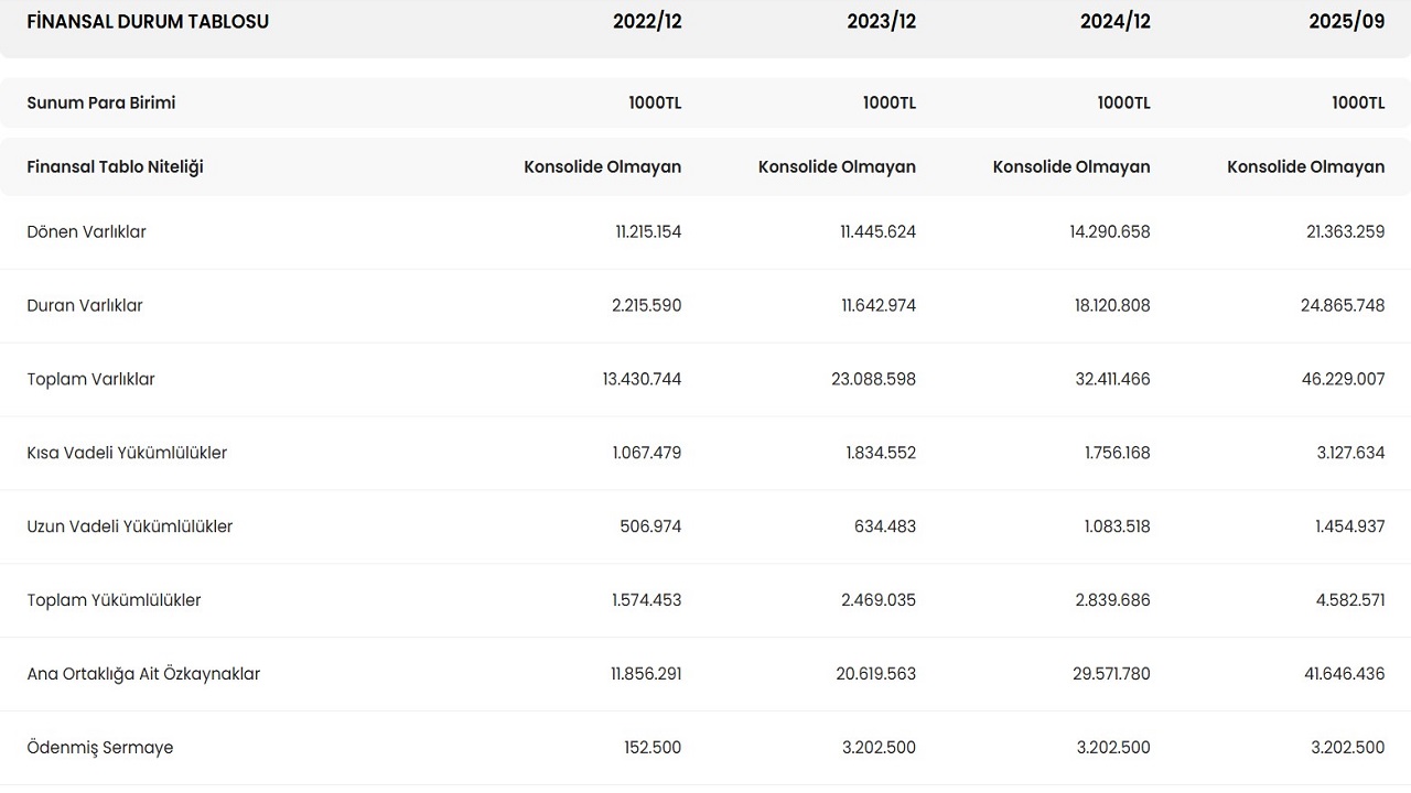 Kasım ayı sona ermeden hem unvanı ve hem de borsa hisse kodu değişecek olan Koza Altın'ın 2025 yılı 3. çeyrek bilançosu KAP üzerinden deklare edildi. 2 hafta sonra Türk Altın İşletmeleri A.Ş unvanını alacak olan ve hisse kodu da KOZAL yerine TRALT olarak değiştirileceği duyurulan firmanın finansal tablolarından yansıyan rakamlar haberimizde: