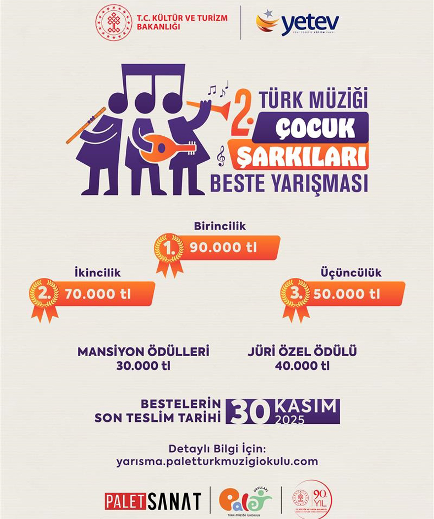 Kültür ve Turizm Bakanlığı Güzel Sanatlar Genel Müdürlüğü tarafından düzenlenen “2. Türk Müziği Çocuk Şarkıları Beste Yarışması” için başvurular başladı.