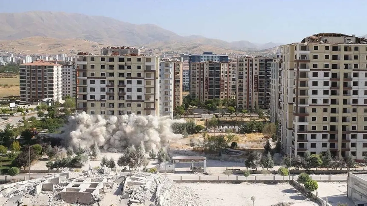 Yeşilyurt ilçesine bağlı Bostanbaşı Mahallesi'nde, depremlerde ağır hasar alan 12 katlı 2 binanın yıkımında patlayıcı kullanıldı.