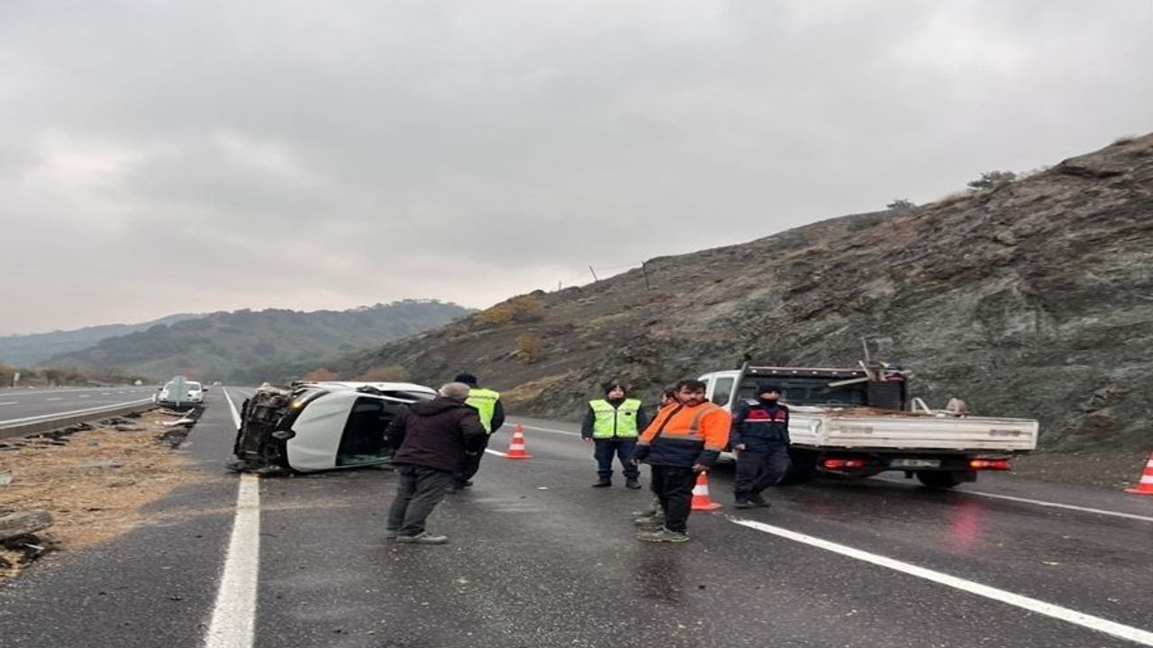Kazada Y.K. idaresindeki Yozgat plakalı otomobil, seyir halindeyken lastiğinin patlaması sonucu takla atıp devrildi.