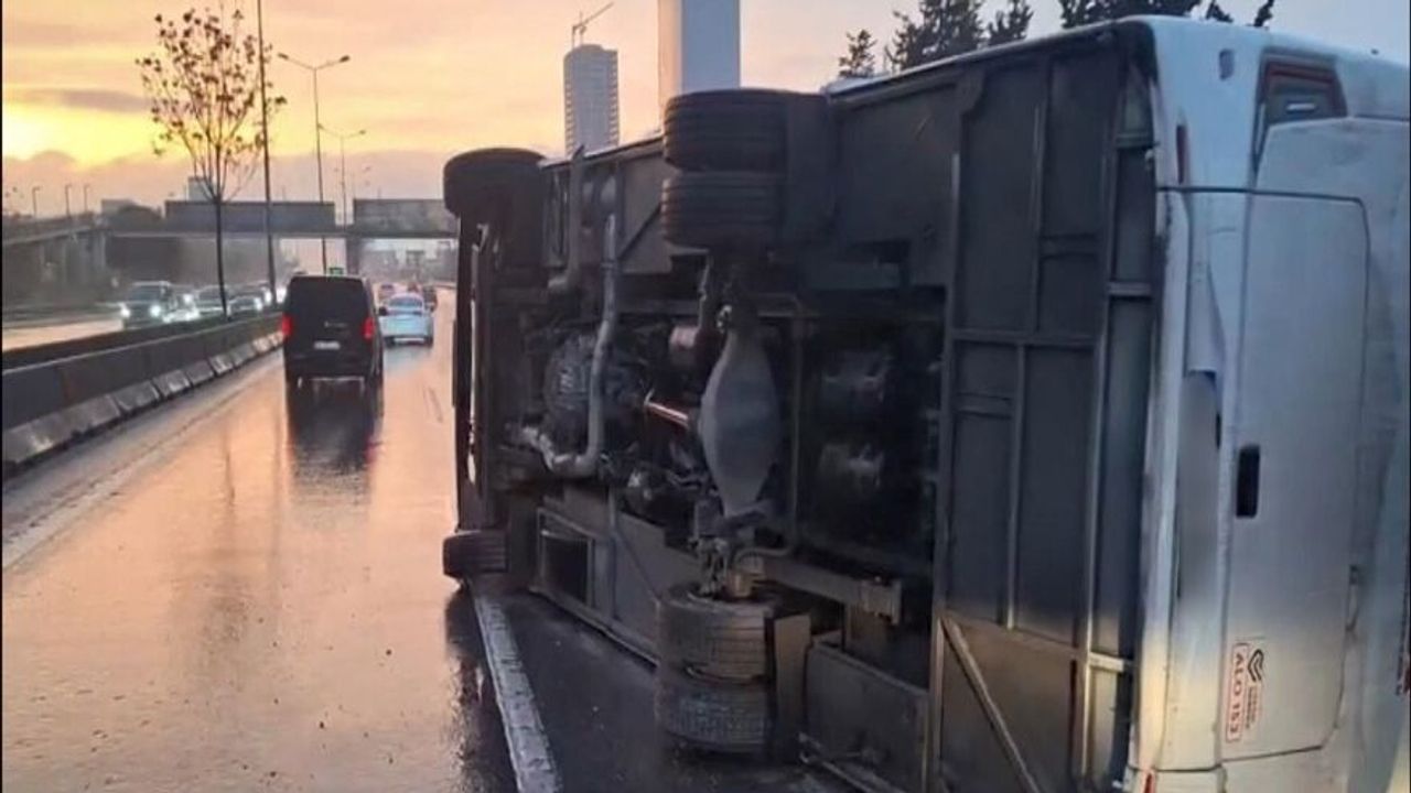 İstanbul’un Maltepe ilçesi D-100 Karayolunda seyir halindeki havalimanı çalışanlarını taşıyan servis minibüsü yağışın da etkisiyle kayganlaşan yolda devrildi. Meydana gelen kazada devrilen servis minibüsünde bulunan 2’si ağır 5 kişi yaralandı.