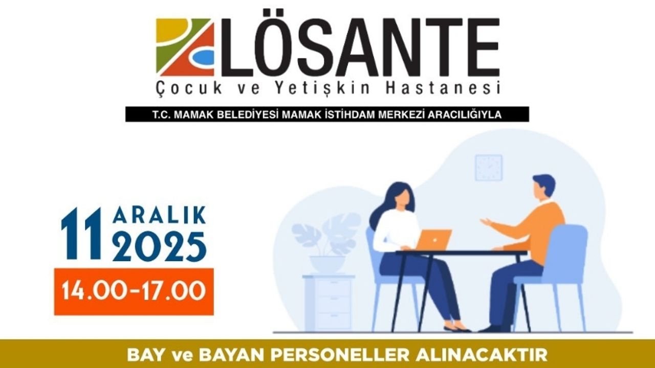 İş arayanlar için önemli bir fırsat Mamak’tan geliyor. LÖSANTE Çocuk ve Yetişkin Hastanesi’nde görevlendirilmek üzere farklı alanlarda personel alımı yapılacağı duyuruldu.