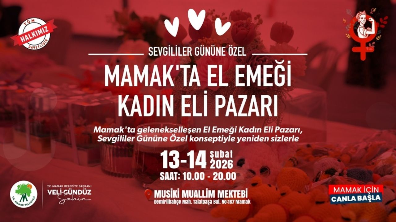 Mamak Belediyesi, kadınların üretime katılımını güçlendirmek ve ev ekonomilerine katkı sağlamak amacıyla uygulamaya koyduğu “El Emeği Kadın Eli Pazarı”nı Sevgililer Günü’ne özel konseptiyle açıyor.