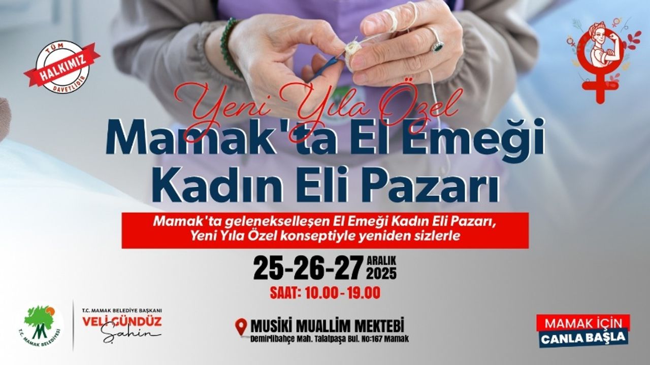 Mamak Belediyesi, kadınların üretime katılımını ve ev ekonomilerine katılımını Destekleyici çalışmalarını yeni yılda da sürdürmeyi hedefliyor. Bu çerçevede başlatılan “El Emeği Kadın Eli Pazarı”, yeni yıla özel konseptiyle 25-26-27 Aralık tarihlerinde Musiki Muallim Mektebi’nde Mamaklılarla bir araya gelecek.