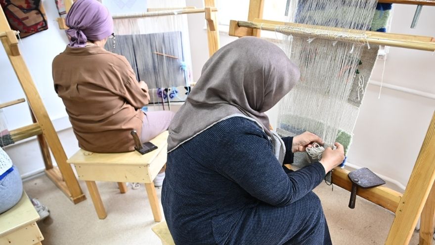 Ahmet Yesevi Aile Merkezi’nde bulunan Kilim Dokuma Atölyesi’nde, geleneksel el sanatları gelecek kuşaklara aktarılıyor.