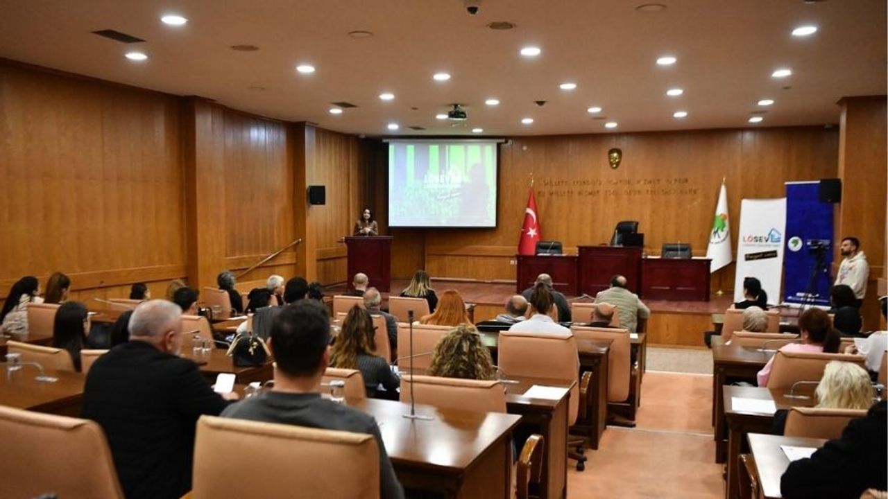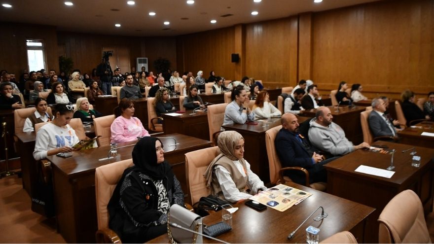 Belediye personelleri belediye meclis salonunda, 2-8 Kasım Lösemili Çocuklar Haftası kapsamında düzenlenen farkındalık seminerinde bir araya geldi.