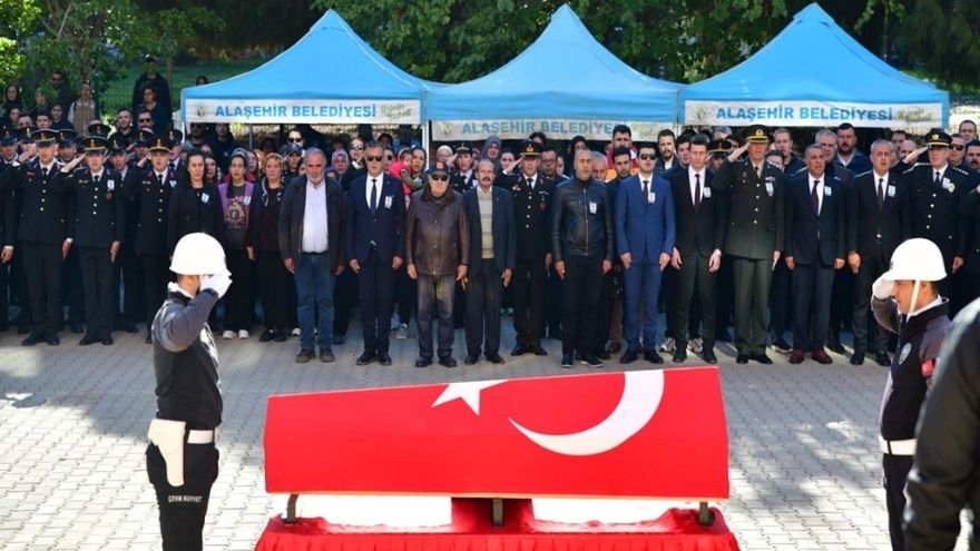 Manisa'nın Alaşehir ilçesinde, görev başındayken içinde bulunduğu ekip aracının park halindeki tıra arkadan çarpması sonucu şehit olan 10 yıllık polis memuru Ali Barut için Alaşehir İlçe Emniyet Müdürlüğü'nde tören düzenlendi.