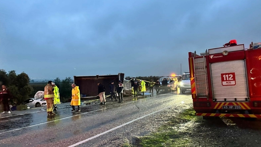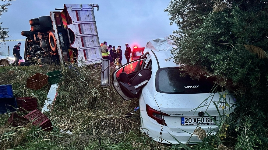 İ.G. (39) yönetimindeki 45 Y 8708 plakalı kamyonet, yoğun yağış nedeniyle yolda savruldu. Direksiyon hakimiyetini kaybeden sürücü, aracın devrilmesine engel olamadı. Devrilen kamyonet, sürüklenerek Salihli yönüne ilerleyen A.Ç. (31) yönetimindeki 20 AFU 681 plakalı otomobile çarptı. Çarpmanın şiddetiyle her iki araçta da büyük hasar meydana geldi.
