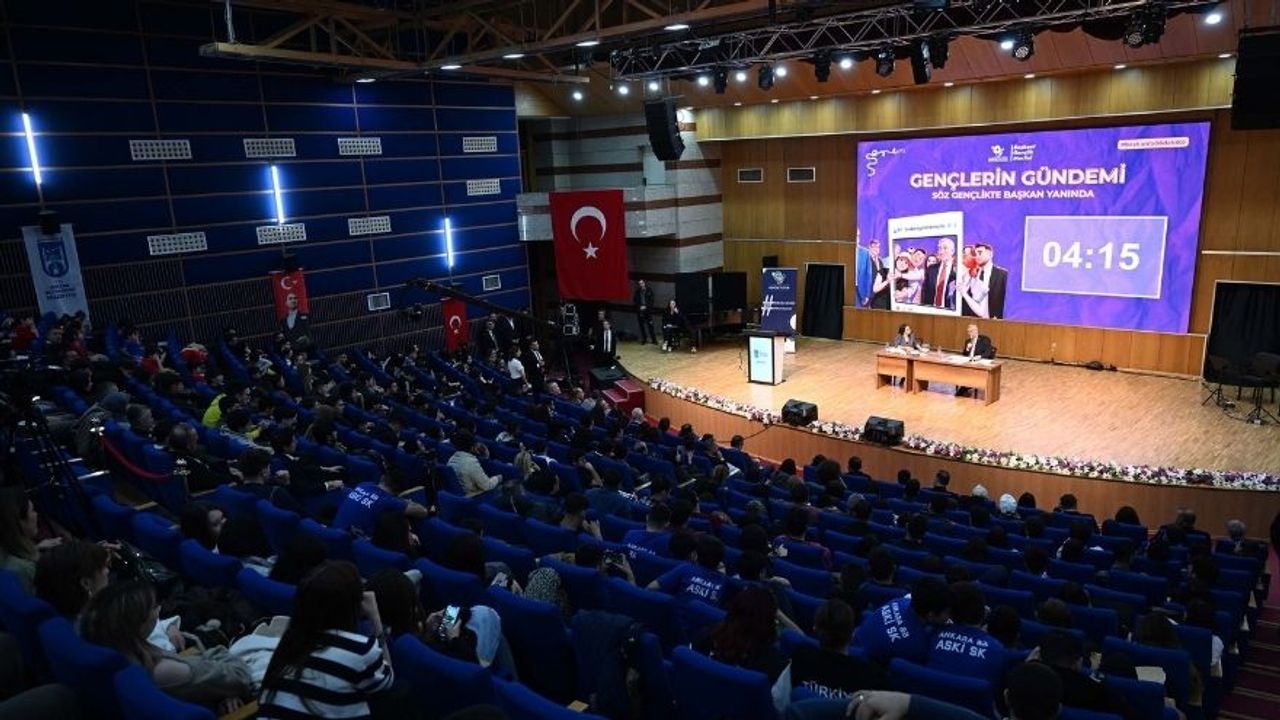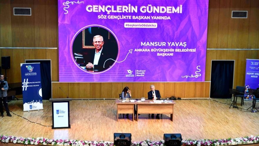 Ankara Büyükşehir Belediye Başkanı Mansur Yavaş, Kocatepe Kültür Merkezi’nde düzenlenen ‘Söz Gençlikte, Başkan Yanında’ programında gençlerle buluştu.
